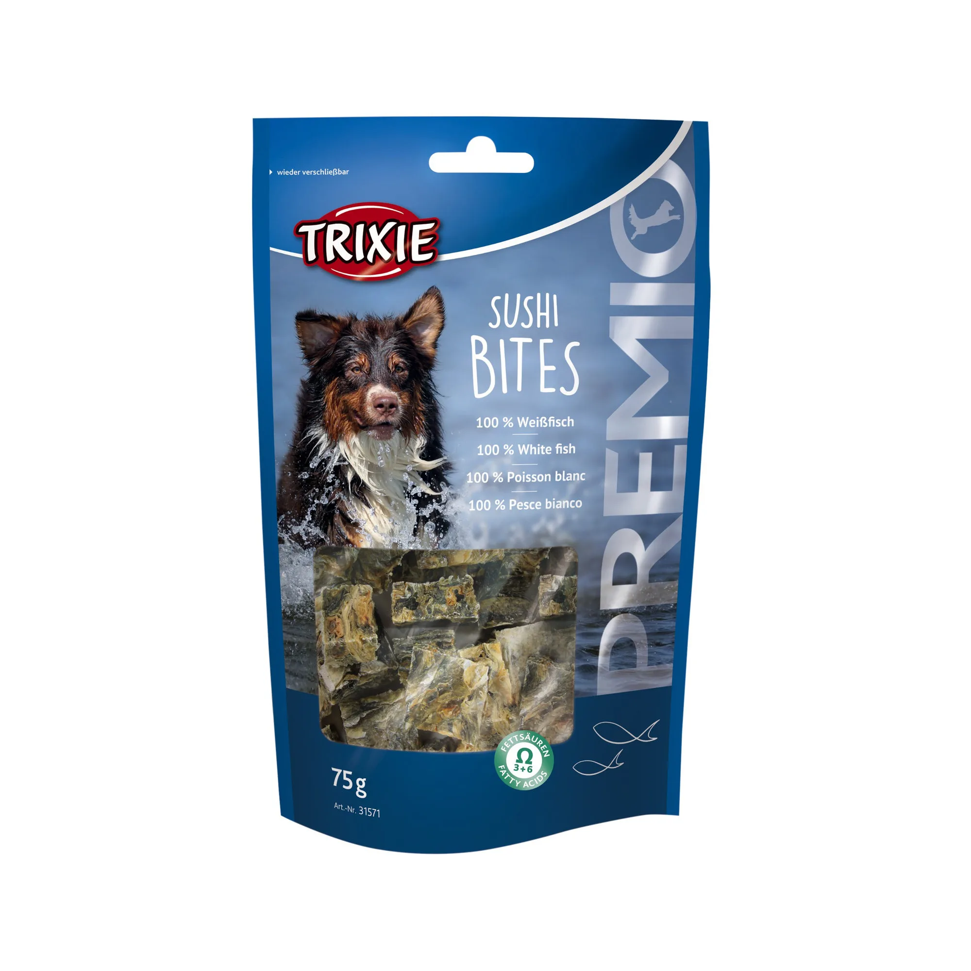 Do you love sushi? And does your dog love it too? Treat him to the tasty Sushi Bites from Trixie. This snack is made of 100% white fish. The snack is especially rich in protein and natural omega 3 and 6 fatty acids. To keep these snacks fresh, they come in a handy resealable bag.